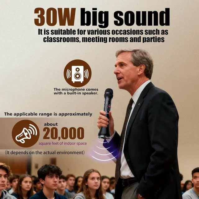 This microphone delivers 30 watts of output power, offering louder volume and enhanced stereo effects. The sound quality will absolutely exceed your expectations.