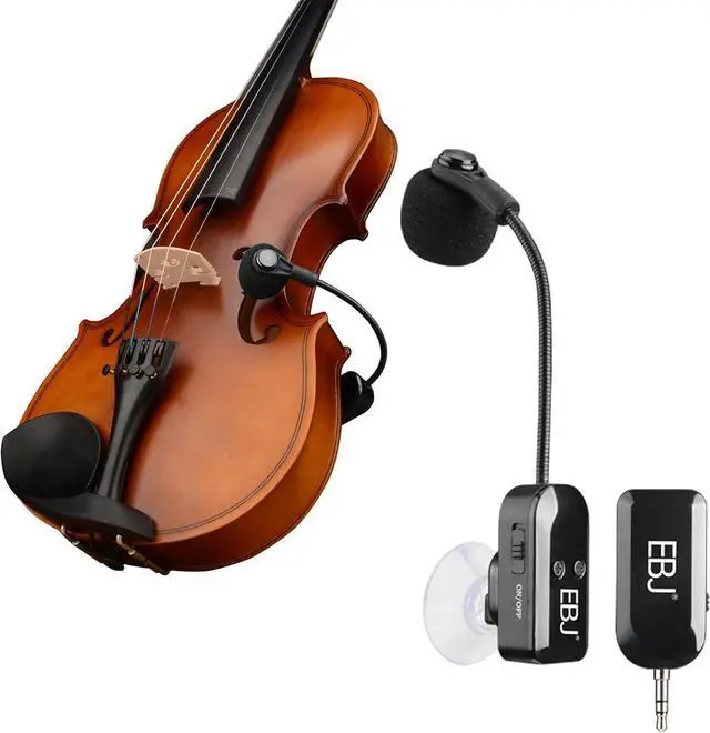Easy to use - two suction cups of different sizes can be used without causing damage to the paint. Attach the transmitter to the smooth surface of the instrument, insert the receiver into the MIC interface of the speaker, then turn it on and use it.