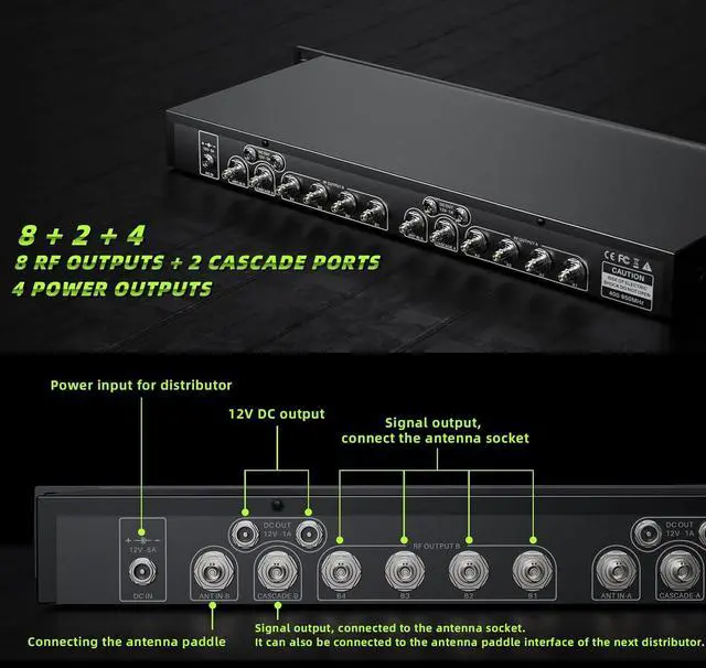 CASCADE PORT AND APPLICATIONThe cascade port can extra connect one antenna distribution system or the fifth wireless receiver for multiset operation. The large wireless system can work by one pair antennas. This UHF antenna distributor ideal for stages, gigs, live shows, conferences, and large-scale outdoor events.