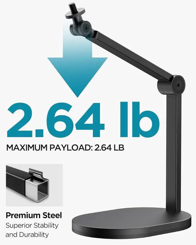 Superior Stability & Durability: Crafted from premium steel with a weighted 2.4lb base, this microphone stand offers unmatched stability and can support up to 2.64 lbsfar exceeding competitors limited to 1.98 lbs. Perfect for heavy-duty microphones and equipment.