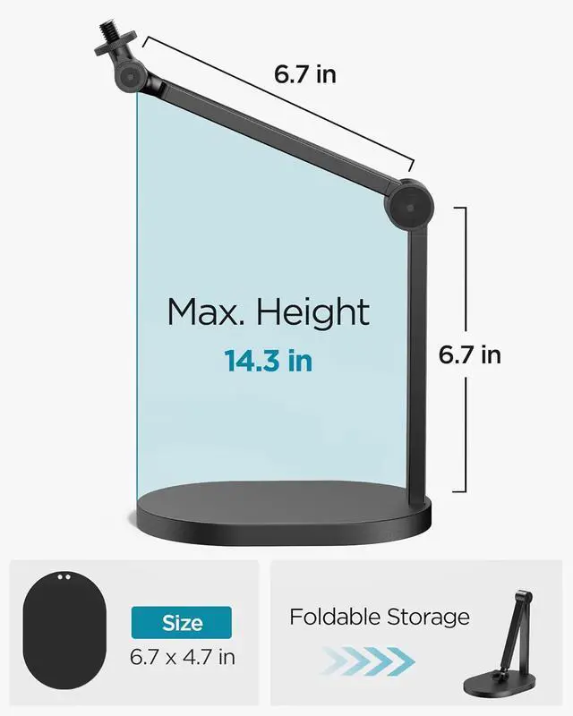 Compact & Portable Design: With a compact base measuring just 6.7 x 4.7 inches and a foldable microphone arm, this microphone arm stand is perfect for small spaces and easy to transport, making it a great choice for on-the-go creators.