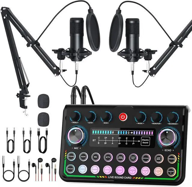 [All-in-One Podcast Bundle for Beginners] The SkillDance podcast kit is a complete plug-and-play bundle for beginners who want to start creating high-quality content immediately. Includes 1 soundboard, 2 cardioid condenser microphones, 2 adjustable boom arms, 2 shock mounts, 2 dual-layer pop filters, 2 anti-wind foam caps, and 2 monitoring headphones. Perfect for solo creators or co-hosted podcasts. Ideal for YouTube, TikTok, streaming, and podcasting.