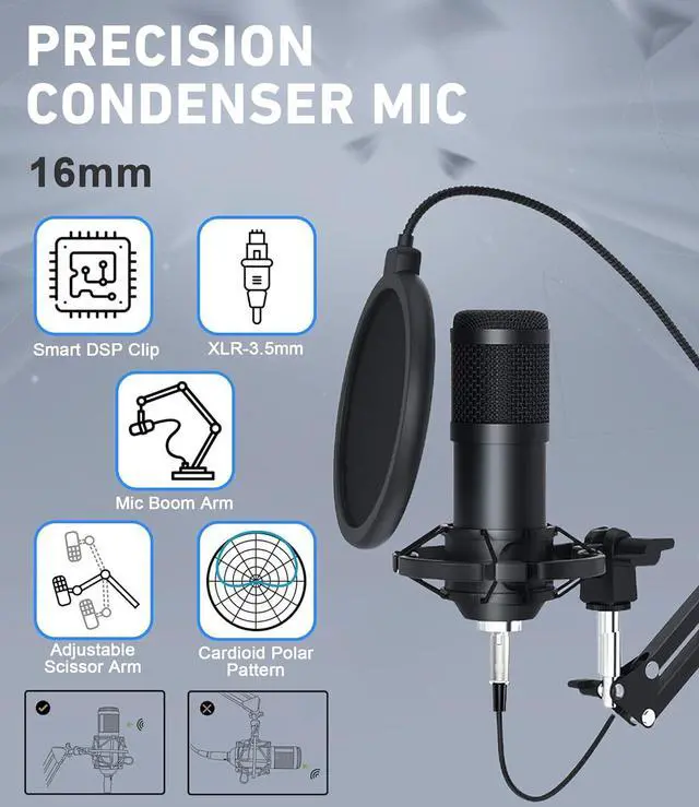 [Pro-Grade Podcast Microphones for Studio-Quality Audio] Each cardioid condenser microphone captures sound directly in front, minimizing background noise for clearer recordings. Upgraded sound chipset supports 120kHz sampling rate and 24-bit bitrate, delivering professional broadcast-quality audio. Perfect for live streaming, vocals, interviews, and duo podcasting. Pro tip: speak towards the capsule side (round disc behind the grille) for optimal sound.