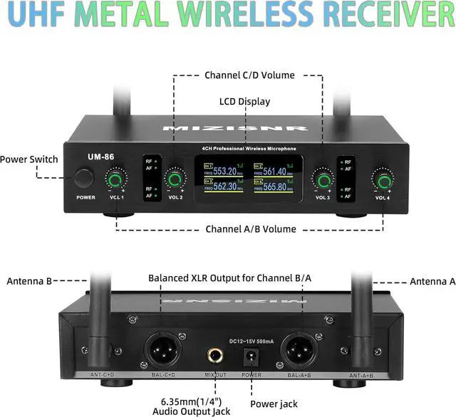 EXCEPTIONAL WIRELESS PERFORMANCE: This 4 channel wireless microphone system is equipped with advanced wireless transmission technology, featuring automatic connection and interference-free, stable signals. It supports long-range operation up to 300ft/90m, allowing you to move freely during performances.