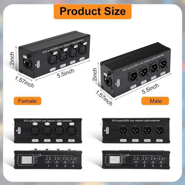 Wide applications: our 4 channel XLR cable extender is lightweight and portable, providing quick equipment configuration for live performances such as live sound, lighting, stage shows and recording studios, plug and play, easy to use and wide range