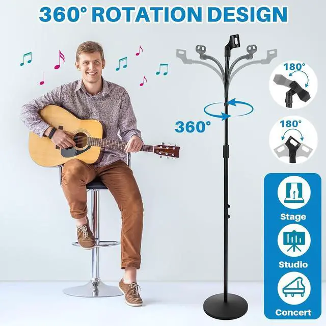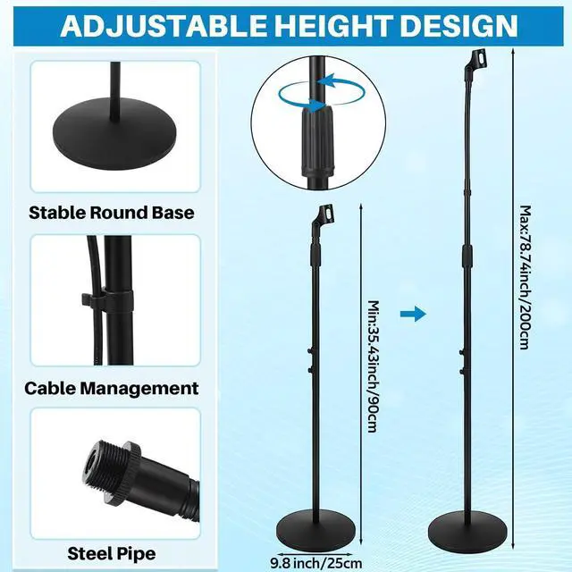 Adjustable Height and Angle: the mic stand boom arm is feature with knob adjustment, adjustable height range is 35.4-78.7inch/90-200cm, fitting different performers and applications; The mic stand gooseneck supports 360°rotation, the included mic clip offers effortless 180°rotatable angle adjustments, ensures suitable microphone positioning every time, and can easily adjust the microphone angle, further enhancing your performance with optimal sound capture