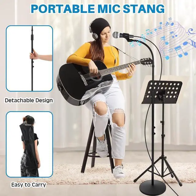 Easy to Use and Carry: the portable Mic stand is designed for a detachable design, you can install and use it quickly; The package comes with a carry bag, all components can be stored in the attached carry bag; Not only can it save storage space, but it can also be easily transported and carried out; Which provides convenience for various types of activities like stage, studio, road show, concert, and outdoor performances