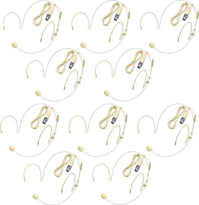 Packing List: 10 Pack x Headset Microphone.Beige design of the wired ear hanging headphone microphone blends seamlessly with various skin types, making it almost invisible.For use on stage,houses of worship, presenters,TV presenters,lecturers,musicians,actors,singers and any other occasion