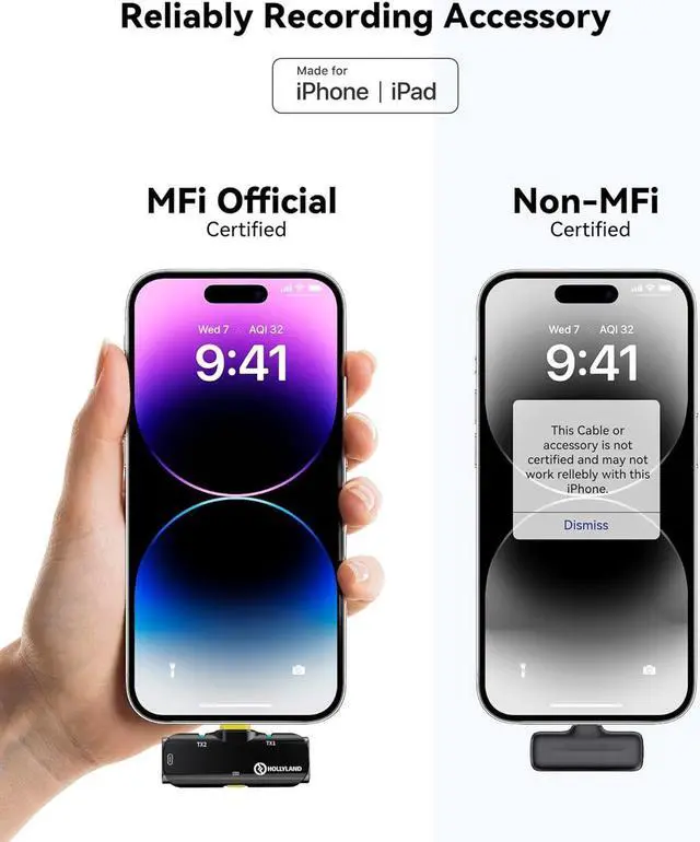MFi Certified: This MFi certified wireless lavalier microphone is tested and endorsed by Apple and is safe, high-performance and compatible with your iPhone or iPad.