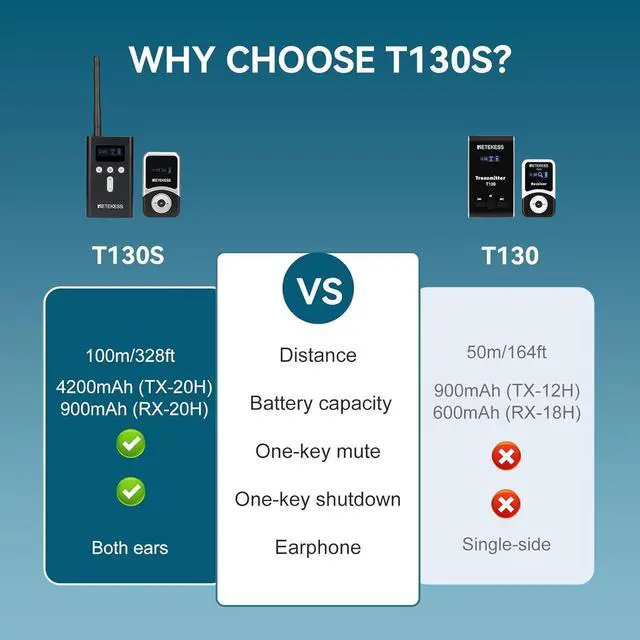 Make communication available everywhere, explanations no longer complicated. Note: The model of the transmitter is T130S and that ofreceiver is T131S.