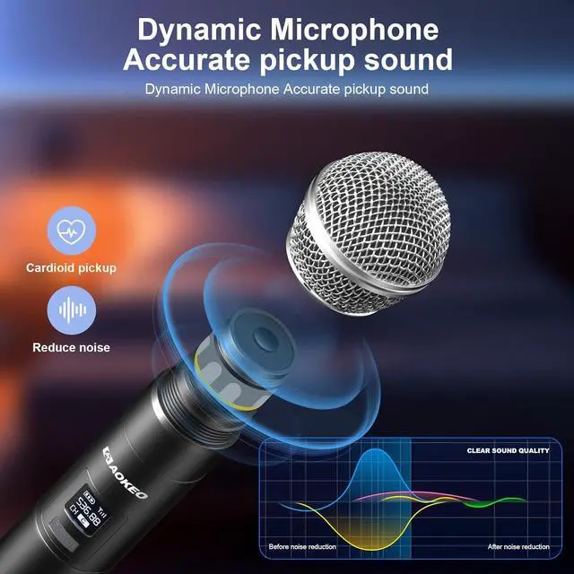 Excellent sound: This wireless microphone system is fully equipped with high-quality chips and has automatic noise reduction function. It can highly reproduce the sounds of human voices and instruments, ensuring clearer, purer, and fuller sound quality.
