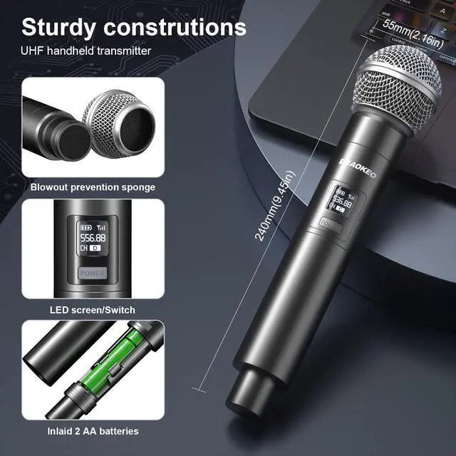 Strong battery life: The power consumption of this wireless mic chip is very low. The brand new AA battery can run continuously for more than 8 hours. You can enjoy karaoke and gatherings to the fullest with it, without worrying about battery life.