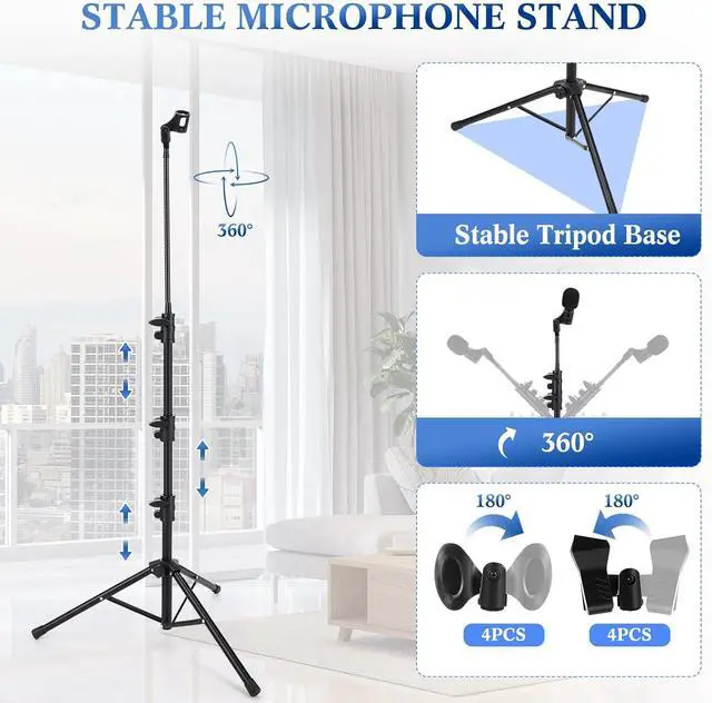 Wide Application: our package included 4 universal mic stands, 8 microphone clip holders in two different sizes, 8pcs extra mic clip holders base, 8pcs size different clip-on cable holders, 12pcs cable ties and 4 carry bags; Our 4set microphone stand can be widely applied in stage performances, daily singing, speeches, parties, hosting, concerts, outdoor performances and other types of occasions