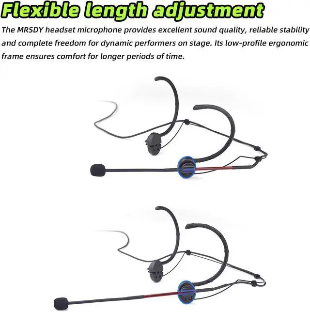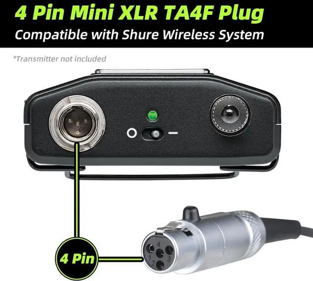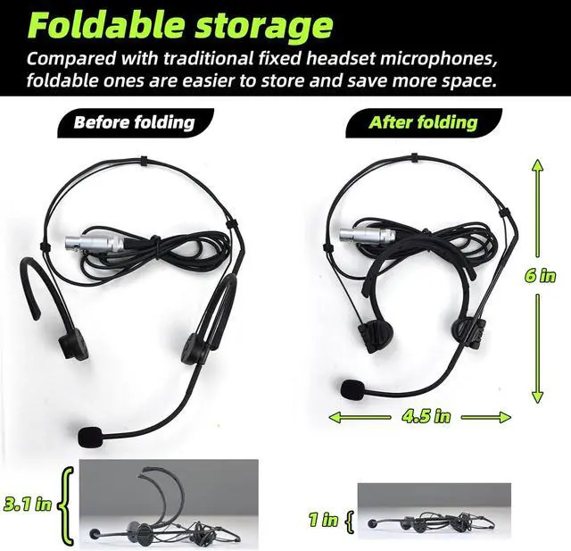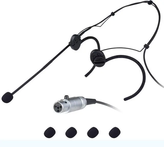 Foldable Headset Microphone for Shure Wireless System, Omnidirectional Condenser Double Over Ear Headworn Mic, 4-Pin Mini XLR, Cable Length 42 Inch (Black)