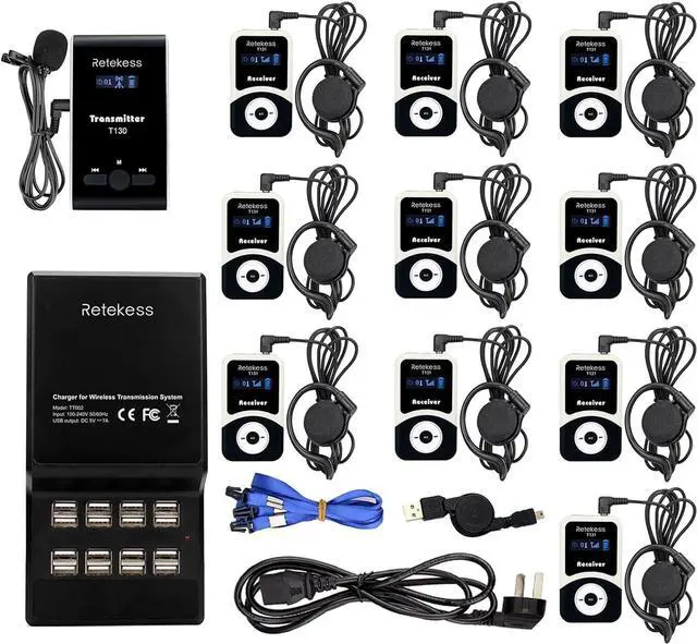 Compact and portable; Retekess T130 wireless tour guide system is lightweight and small; the transmitter weighs 56g and receiver weighs only 46g; you can easily take the assistive listening system anywhere; perfect for guided tours, factory visits, study tours
