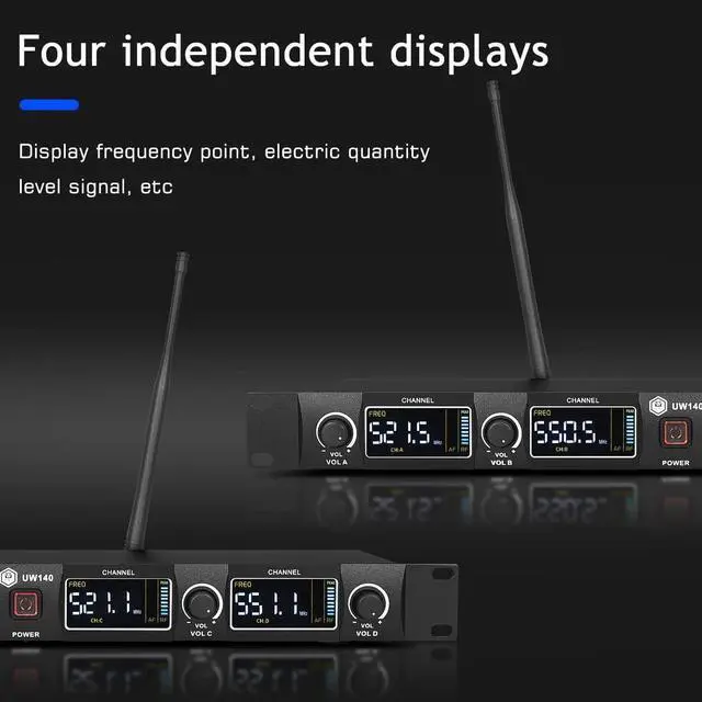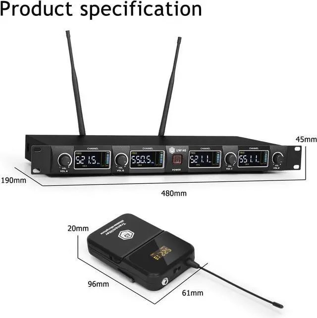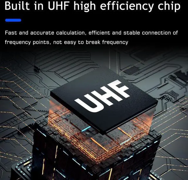 UHF Anti-Interference System:This uhf wireless microphone system features adjustable UHF circuitry to intelligently avoid signal interference, delivering crystal-clear audio transmission for professional scenarios like live performances and large conferences