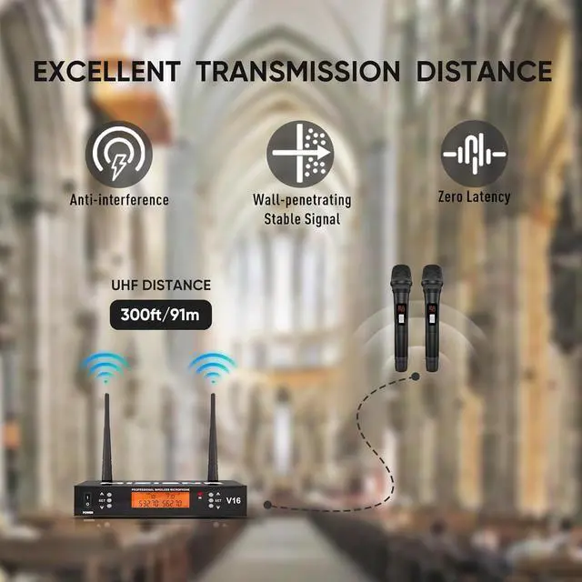 Stable & Reliable Wireless Performance: This 2-channel wireless microphone system ensures a stable, interference-free signal, allowing smooth and uninterrupted audio transmission. With a 300ft/90m long-range capability, you can move freely without signal drops.