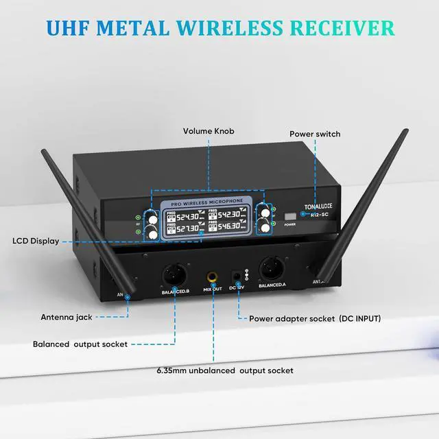 All-in-One 4 Channel Wireless System Comes with a durable metal receiver and 4 handheld microphones, making it a complete solution for family parties, classrooms, churches, or small events.