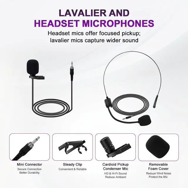 VERSATILE USAGE: Supplied with both headset and lapel microphones, the system offers comfort and flexibility, accurately picking up voices from different angles. Perfect for churches, classrooms, training, lectures, and business presentations.
