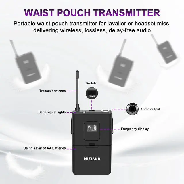 USER-FRIENDLY OPERATION: Power on the receiver, insert 2 AA batteries (not included) into each bodypack, and the system automatically pairs for instant use. The included 1/4" (6.35mm) cable ensures wide compatibility with amplifiers, TVs, home theater setups, and PA speakers.