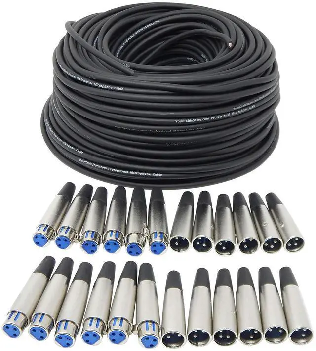 Your Cable Store DIY Make Your Own Custom Length XLR Cable Kit 250 Ft of 28 AWG Balanced XLR Cable, 12 XLR Male Connectors and 12 XLR Female Connectors