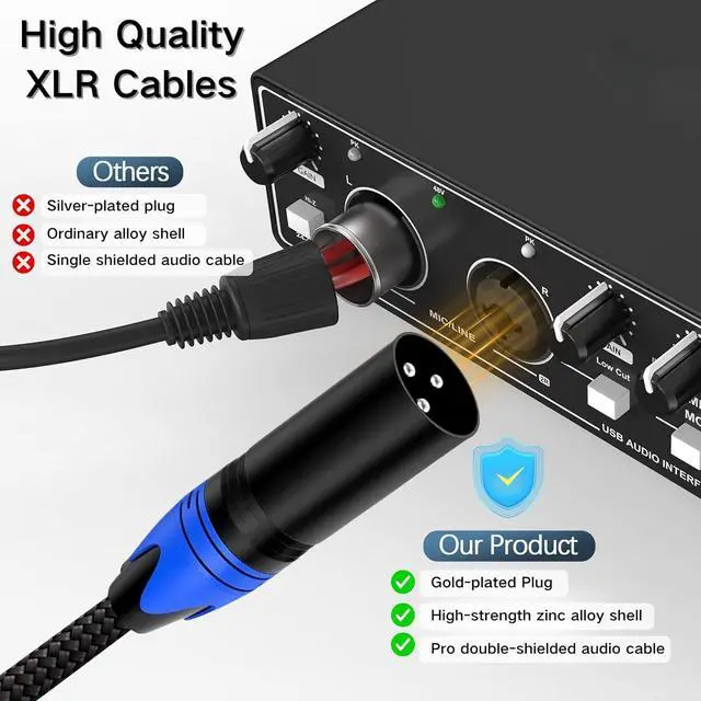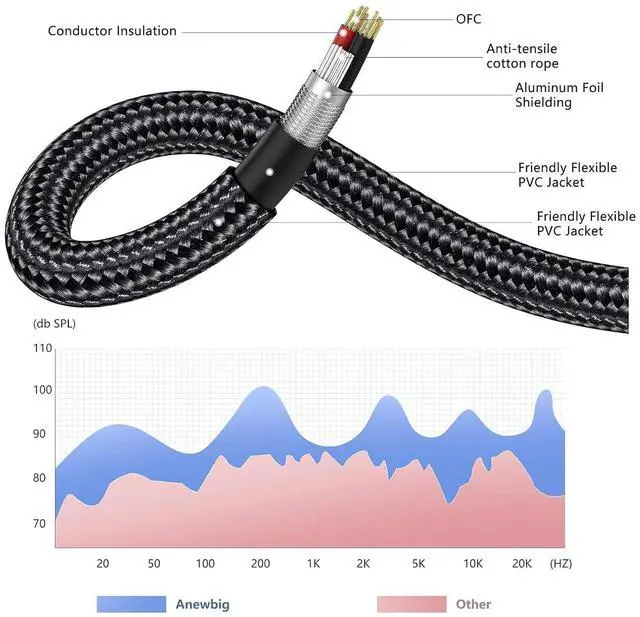 CRYSTAL CLEAR SOUND, ZERO NOISE: Anewbig XLR microphone cable advanced 4-Layer Shielding (Oxygen-Free Copper, Copper Braid, Carbon Fiber, Cotton) blocks 99% of interference for pristine, hum-free audio in any setup.