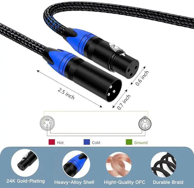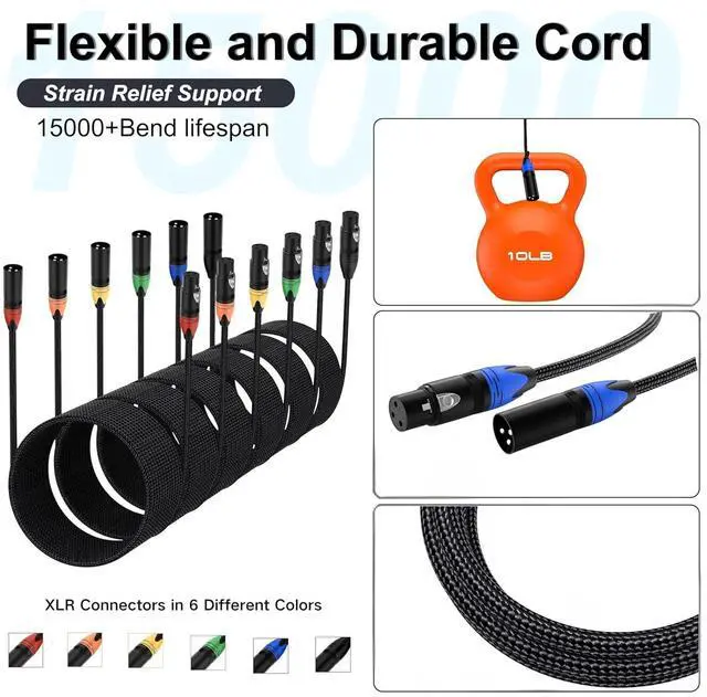 SECURE LOCKING CONNECTORS: The XLR microphone cable is features positive-locking XLR connectors that grip firmly and won't loosen or disconnect accidentally, even during movement. Ensures reliable signal transmission every time.