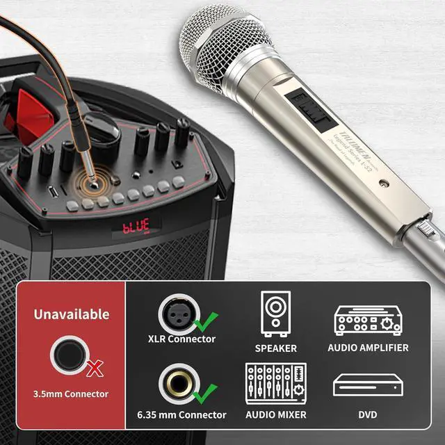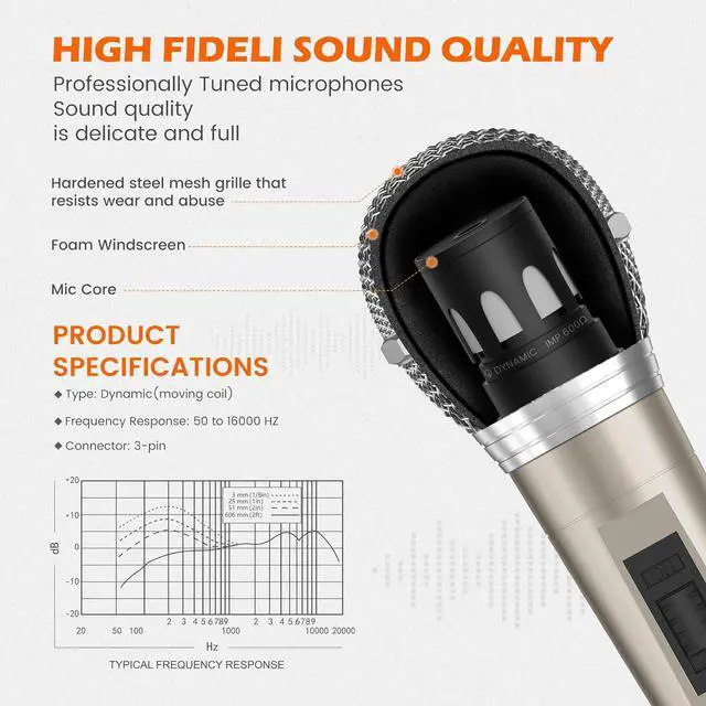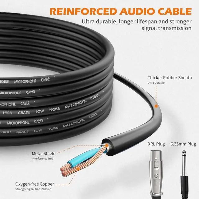 Dual XLR Cables for Versatile Connection: This XLR microphone comes with two cables20FT for stage freedom and 6.5FT for close-range usemaking it flexible for different environments. Whether youre connecting to a mixer, amplifier, or PA system, the oxygen-free copper cores ensure stable transmission with no distortion. This wired dynamic microphone is designed for vocalists, DJs, and presenters who need consistent sound and reliable connectivity.