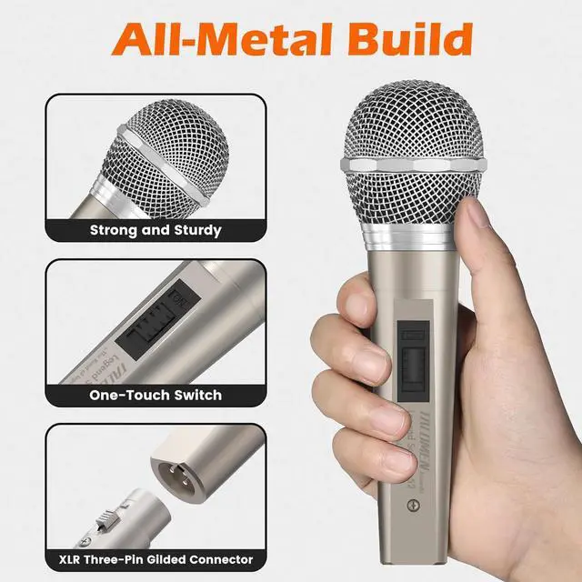 Durable Construction & Lasting Value: Built with rugged materials and finished with a scratch-resistant golden coating, this wired microphone for karaoke is made to last through heavy use. The reinforced connectors and solid capsule provide long-term reliability, ensuring stable performance over time. As both a studio microfono and singing microphone, it delivers professional-grade sound and adds a touch of elegance to every performance.