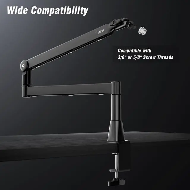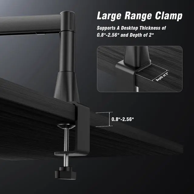 Studio-Grade Stability: Industrial all-metal joints + reinforced steel clamp grip desks up to 2.6" thick. Securely holds heavy broadcast mics (3.3LB capacity) with zero wobble even during aggressive keystrokes or dynamic commentary.