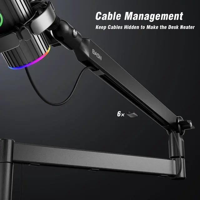 10-Second Setup: Attach to desks via clamp (no drilling) + slide in the lift rod + mount your mic. Integrated cable routing keeps you stream-ready in seconds.