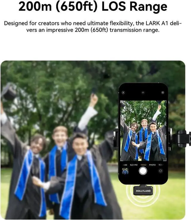 200m (650ft) Wireless Range: Record up to 200m (650ft) with anti-interference tech. Capture wide scenes confidently using this mini wireless microphone's dropout-free transmission
