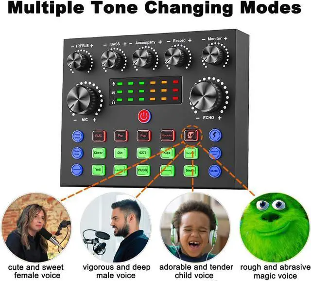Multifunctional condenser microphone bundle Live sound card has 10 sound effects, 4 sound variations ( Child, Magic, Female and Male), 4 sound modes and 13 functions, podcast mixer supports 2 podcast mic inputs with 1 accompaniment input, suitable for 2 or more people to stream simultaneously. Voice changer of podcast equipment bundle will bring you more fun and make your work more creative.