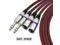 Connector A: TRS male, 1/4 inch / 6.35mm, balanced type, gold plated tip, metal housing, with blue and red color coding rings