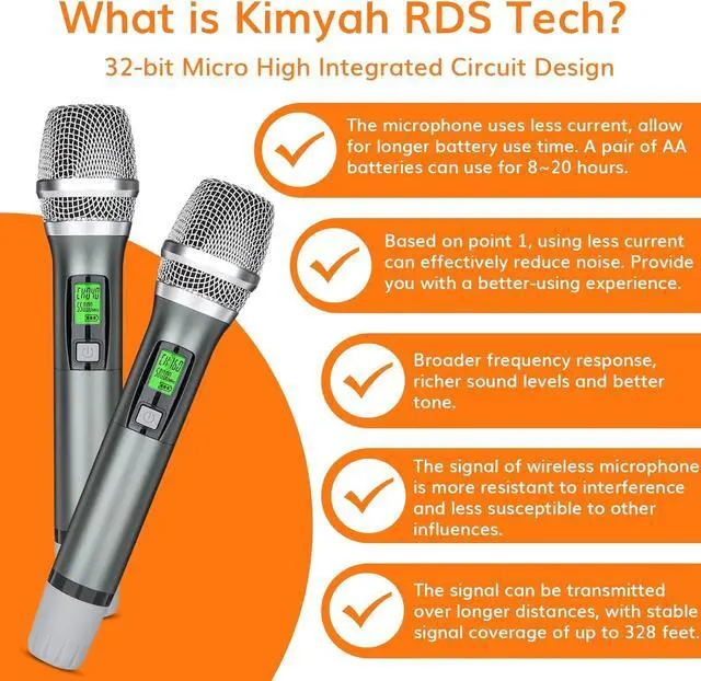 Strong Anti-Interference: The dual-channel wireless system is adopted with the newest RDS digital Pilot technology. RDS tech sets an exclusive ID to each mic, minimizing the signal interference, and avoiding cross frequency.