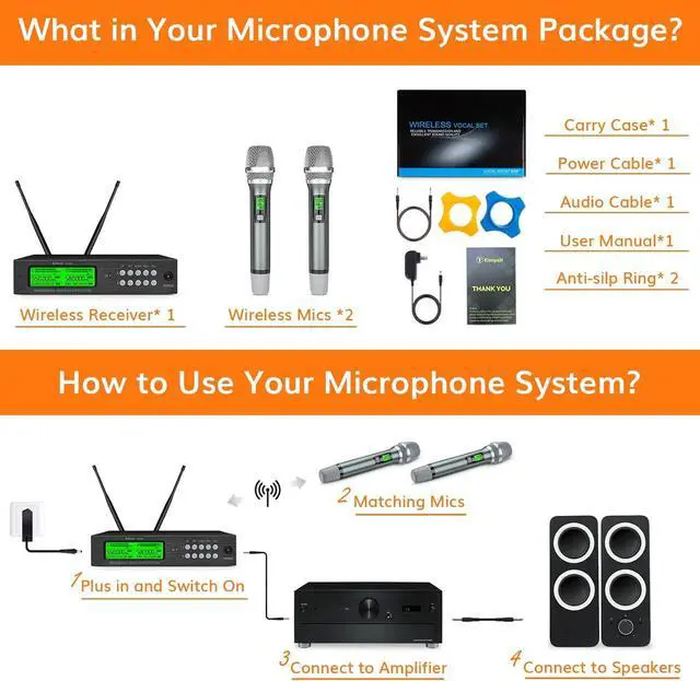Build to last: High-quality external material-wireless microphone system is all made of shiny alloy structure, sturdy and durable, resistant
