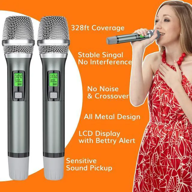 Kimyah Wireless Microphone System, All Metal Dual UHF Cordless Mics of Handheld, 328ft Range, Ideal for Church, Conference and Karaoke, DJ, Wedding(KY-8208)