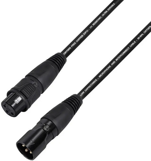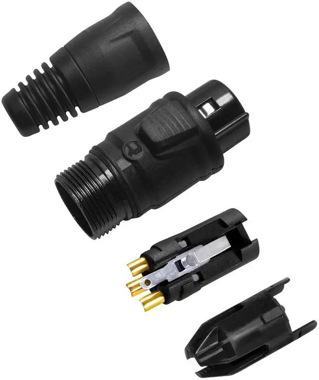 Connectors used on this professional cable assembly: RCX3M-Z-002 & RCX3F-Z-002 are Professional-grade OUTDOOR-USE XLR offerings by Rean, a Neutrik AG Company. These ergonomic XLR plugs sport robust Gold-plated bronze contacts for superior performance (as opposed to cheap connectors proliferating the market) & IP65 rated Dust/Water-Proof (under mated condition) design made using UL94 V-0 rated materials. Stylish Zinc die-cast shell has a Black abrasion-resistant durable finish.
