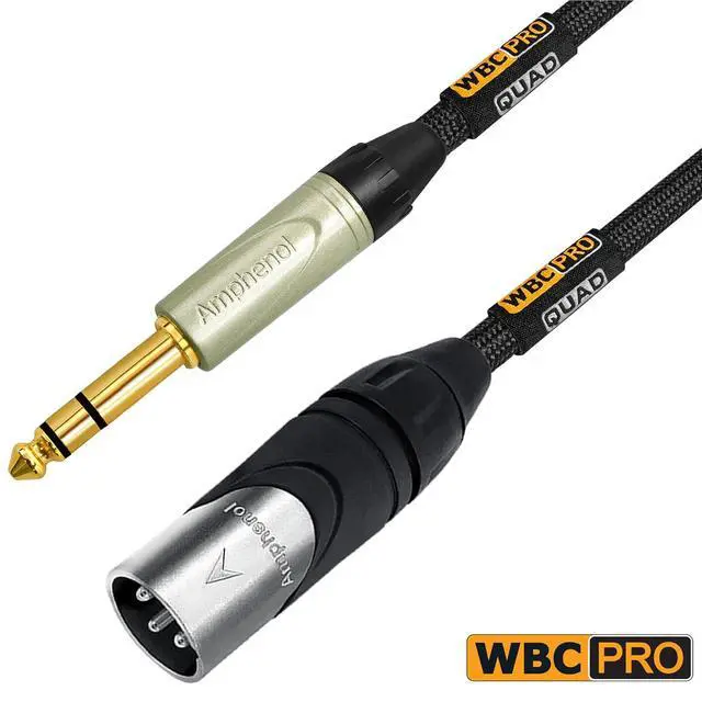 WBC-PRO-Quad Ultra-Silent Ultra-Flexible Balanced Star-Quad XLR to TRS Cable with Amphenol AX3M Male XLR & QS3P-AU Straight TRS Stereo Phone Plugs - Black Tweed Jacket.