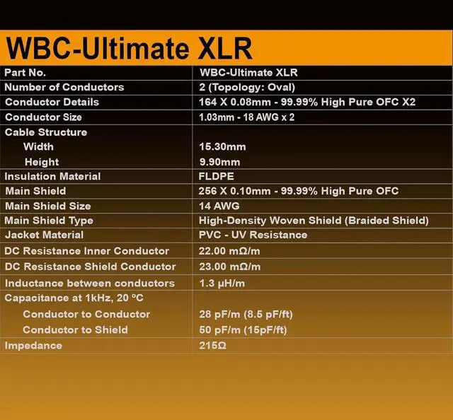WBC-Ultimate Assembly Range is a direct result of popular demand by our valued customers, which takes our already excellent cable solutions a step further. With an industry-leading 8.5pF/ft Ultra-Low-Capacitance & two massive 18AWG central conductors made of 164 strands of 0.08mm, 99.99% ultra-pure OFC, this heavy gauge cable effortlessly delivers deeper lows, sweet mids & higher highs without any fear of signal loss. Satisfies all the most stringent needs of the most demanding audiophile.