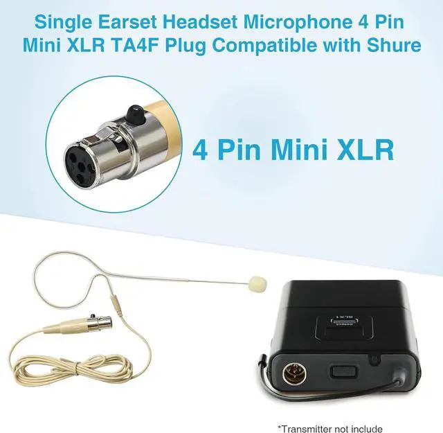 Cable Length 4.92ft (1.5 meters), 4 Pin Mini XLR TA4F Plug Headset Microphone for L1, 11, LX1, SC1, U1, UC1, UT1, T1, ULX1, UR1... Performance Gear, PGX, FP, BLX, SLX, GLX, GLX-D, ULX, QLX, QLX-D, ULXD, UHF-R