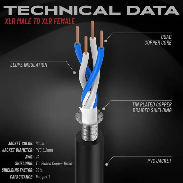 Fine Stranded 99.99% Oxygen Free Copper Quad Core Conductor with Braided Shielding
