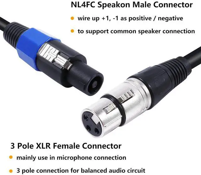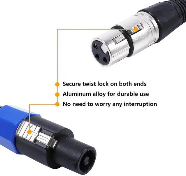 HBU Speakon Male to 3 Pin XLR Female Cable Speakon Male End & XLR Female End Twist and Lock Design