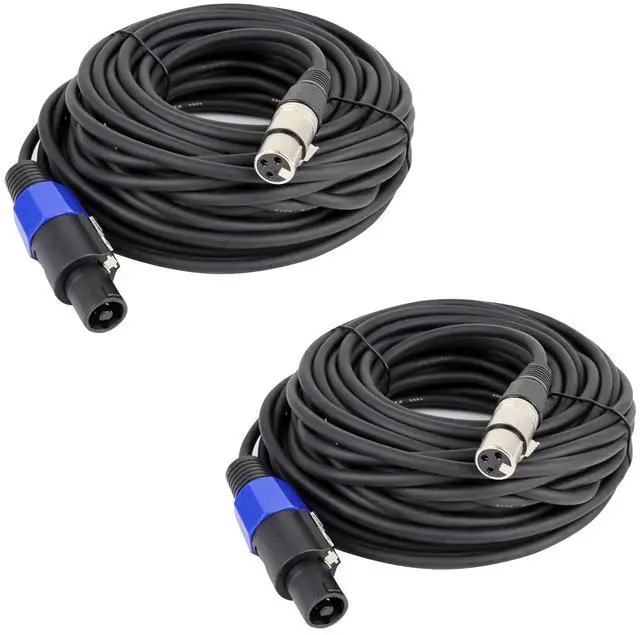 Speakon cables are often used for high-current audio applications. These are the standard cables to connect amplifiers and loud speakers which featured a 4-pole speakON adapter and 3-pin XLR female jacks.