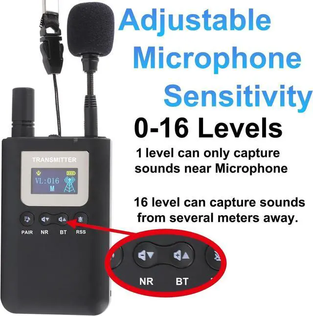 Transmitter and Receiver can adjust volume from 0 to 16 levels,translation system can be used for work guidance even in noisy environments. The transmitter with mute button can prevent the audience from hearing its own voice when needed.