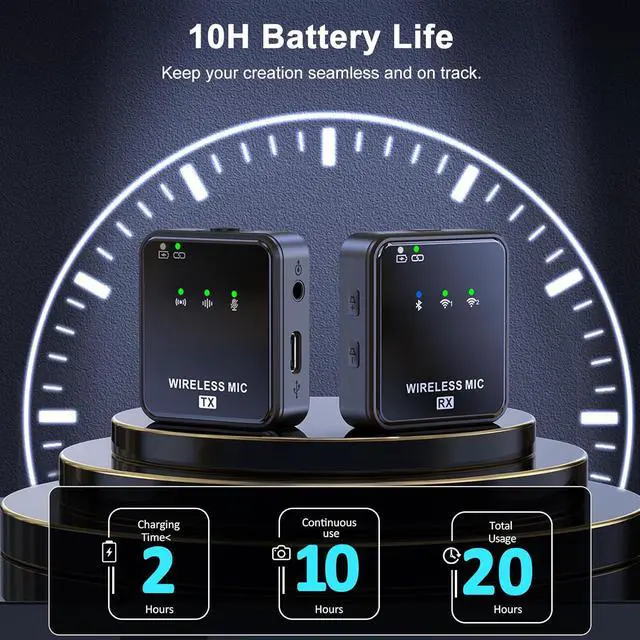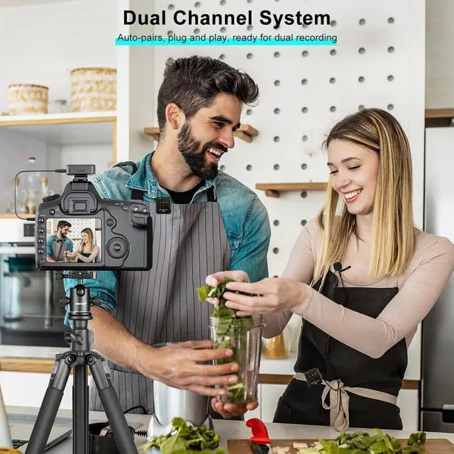 [Auto-Pair,Plug-Play Dual Channel System] This wireless clip on microphone system effortlessly handles up to 2 transmitters and 1 receiver, automatically pairing TX and RX upon power-up. Simply connect the RX to your device and start recording with plug-and-play convenience. Easy to use and ready when you are