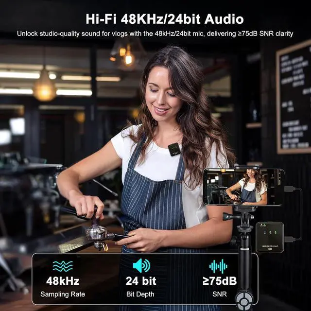 [48KHz/24bit Premium Audio] Experience crystal-clear audio with this omnidirectional tiny mic, engineered with -38dB±3dB sensitivity for pristine voice pickup. Enjoy OTG lossless tech, offering audio fidelity that rivals CD quality. It's equipped with a 48kHz/24bit sampling rate and a remarkable >75dB SNRideal for students, vloggers, journalists, mukbang creators, fitness coaches, and office professionals who demand top-tier audio performance