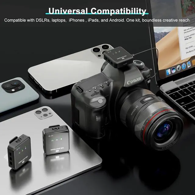 [All-in-One Kit Included] 2 x Transmitters, 1 x Receiver, 1 x 2-in-1 Charging Cable, 1 x 3.5mm Audio Cable, 1 x Camera Audio Cable, 1 x USB-C Cable for Android & iphone 16/15, 1 x Lightning Cable for iPhone, 2 x Windshields, 2 x Monitoring Earphones, and 1 x User Manual. Your success is our priorityreach out for support anytime!