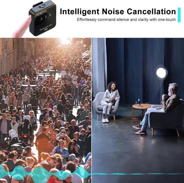 [Automatic Intelligent Noise Cancellation] The noise cancellation activates automatically after power on. Press the TX power button to easily turn the noise cancellation function on or off. With a DSP chip and intelligent audio algorithm, it accurately captures your voice and eliminates environmental noise. The attached windscreen can suppress wind and fabric noises, providing you with professional-grade clear recordings
