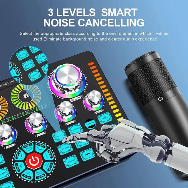 The Podcast Equipment Bundle is equipped with a 48V Condenser microphone, Q7 sound card, Shock mount, Mic adjustable suspension scissor arm stand, Pop filter, and Anti-wind foam Cap. XLR to XLR adapter cable, This studio equipment was designed for podcasting, streaming, and recording. What you get is a complete set of professional podcast equipment bundles that can meet almost all your needs and you dont need to buy other equipment again.